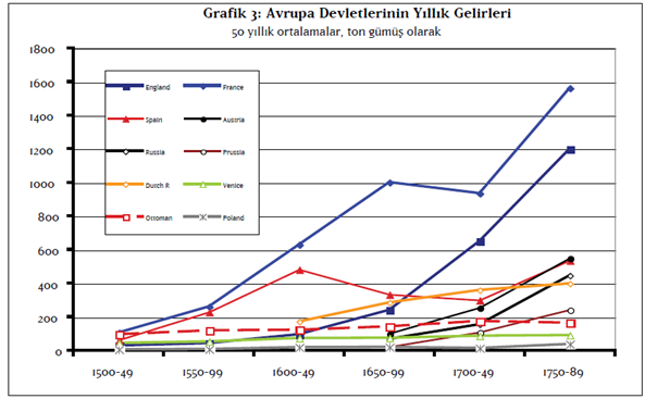 17. ve 18. yüzyıllarda gelirlerini hızla artırabilen Avrupa devletlerine karşılık Osmanlı Devleti’nin merkezde toplayabildiği gelirler oldukça düşük düzeydeydi. Bu farkın önemli bir bölümü özellikle Batı Avrupa’daki daha yüksek nüfus yoğunluğu, kentleşme ve ekonomilerin daha yüksek parasallaşma oranı ile açıklanabilir. Bu özellikler merkezi devletlerin vergi toplamalarını kolaylaştırıyordu. Ancak bu, vergi gelirlerinde oluşan büyük farkın tümünü açıklamakta yetersiz kalıyor. Osmanlı’nın gelirlerinin düşük kalmasının önemli bir nedeni, az vergi toplanması değil, toplanan vergilerin önemli bir bölümünün aracıların elinde kalmasıydı.