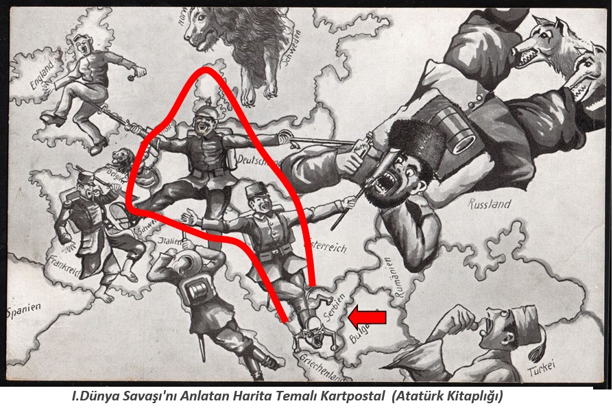 | 4-)Kanıt 1 ve 2′ yi de göz önüne alarak Alman ve Avusturya askerinin Sırbistan üzerinde bir hayvanı eziyor şeklinde resmedilmesi hangi olayın temsildir? |
