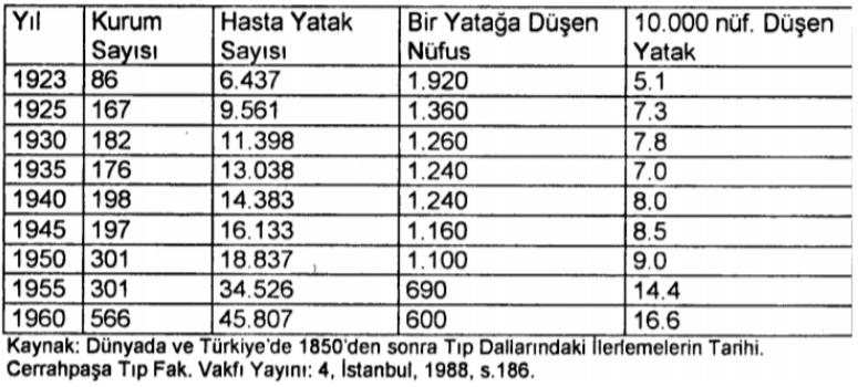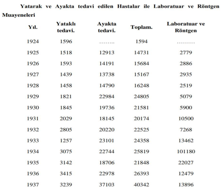 (Kaynak: Halil İbrahim Aksakal, Atatürk Dönemi Sağlık Politikaları, Yüksek Lisans Tezi )