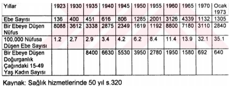 3) Kanıt 101’e göre; 1923-1935 yılları arasında, ebe sayısındaki değişimi değerlendiriniz. 4