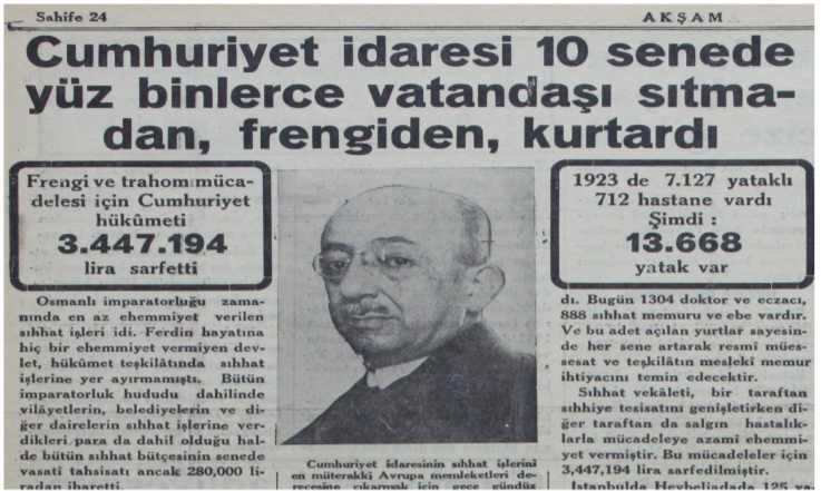 “ ..1926- 1932 seneleri zarfında, 707,386 kişi muayene edilmiş, 26,861 frengili tedavi altına alınmıştır..”
